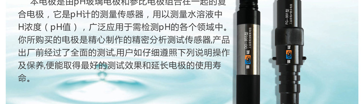 pH電極,是ph計(jì)上與被測溶液接觸的部分,用來測電極電位值的裝置。電位分析法所用的電極被稱為原電池。原電池是一個(gè)系統(tǒng),它的作用是使化學(xué)反應(yīng)能量轉(zhuǎn)成為電能,此電池的電壓被稱為電動(dòng)勢。此電動(dòng)勢由二個(gè)半電池構(gòu)成。其中一個(gè)半電池稱作測量電極,它的電位與特定的離子活度有關(guān);另一個(gè)半電池為參比半電池,通常稱作參比電極,它一般與測量溶液相通,并且與測量儀表相連。pH復(fù)合電極是將pH指示電極和參比電極組合在一起的電極,根據(jù)外殼材料的不同可分為塑殼和玻璃兩種。相對(duì)指示電極而言,復(fù)合電極使用比較方便。