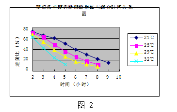變溫條件RF樹脂液透射比與縮合時間關系圖
