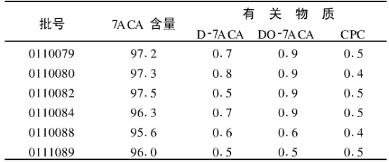 五、高效液相色譜法測(cè)定7-氨基頭孢烷酸含量結(jié)果